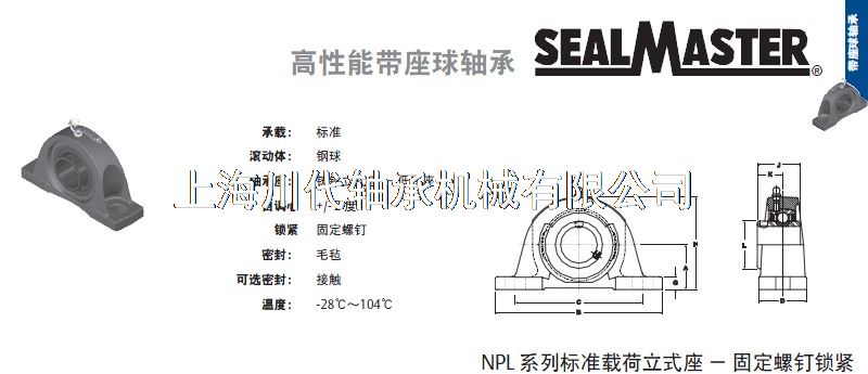 上海川代轴承机械有限公司专业销售SEALMASTER高温轴承 NPL-206轴承,SEALMASTER高温轴承品牌供应商,我们为您提供NPL-206的具体的规格参数及报价,本公司同时销售包括SEALMASTER高温轴承品牌在内的多种进口轴承,包括深沟球轴承、自动调心球轴承、角接触球轴承、圆柱滚子轴承、滚针轴承、球面滚子轴承、推力轴承、Y-轴承、滚轮轴承,直线轴承,滑动轴承,轴承箱及各种精密机械部件等产品,目前公司拥有现货库存、快捷的物流体系、能在较短的时间内为用户解决轴承的配套供应和提供个性化服务。